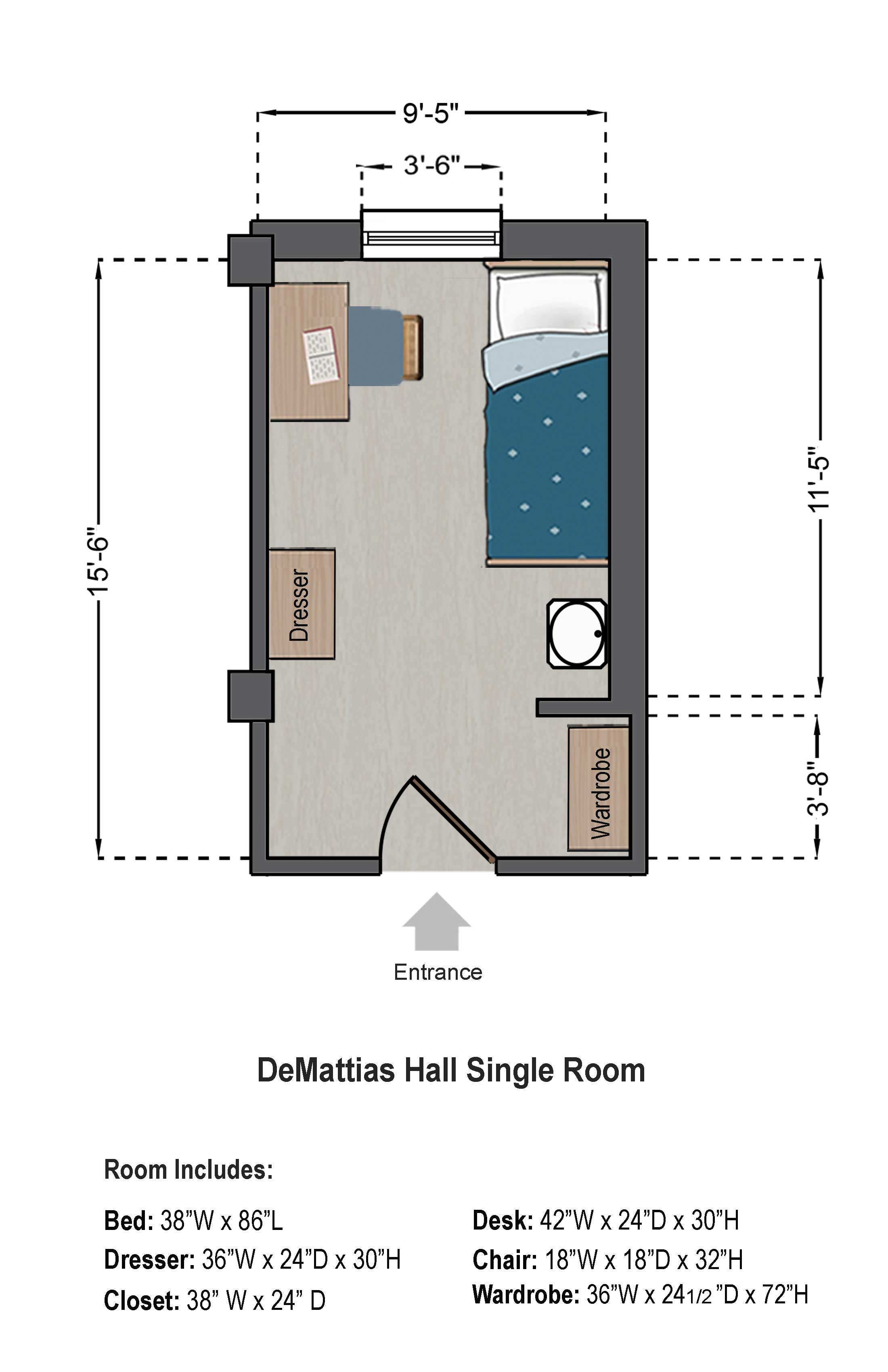 Room Includes:Bed: 38"W x 86"L |