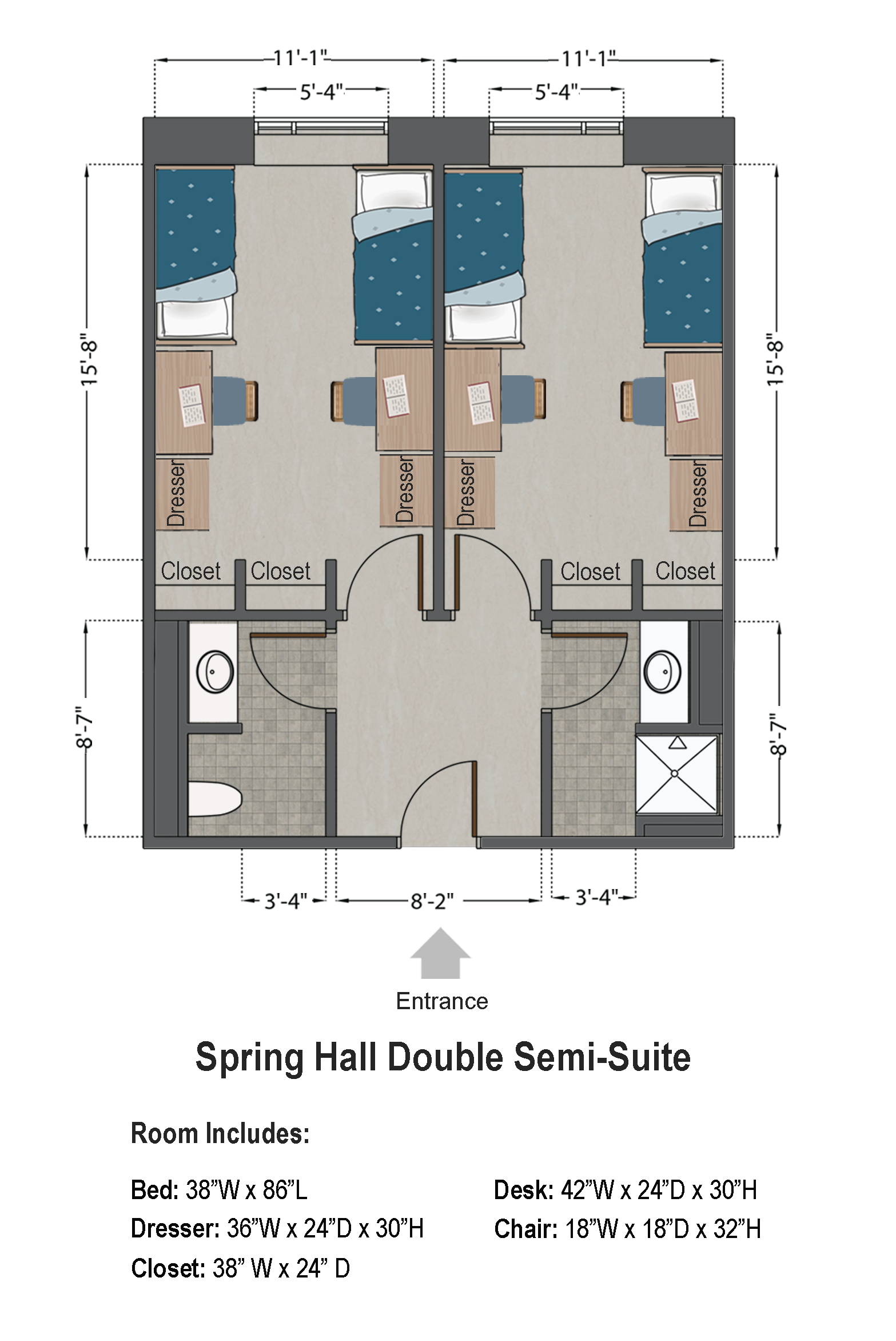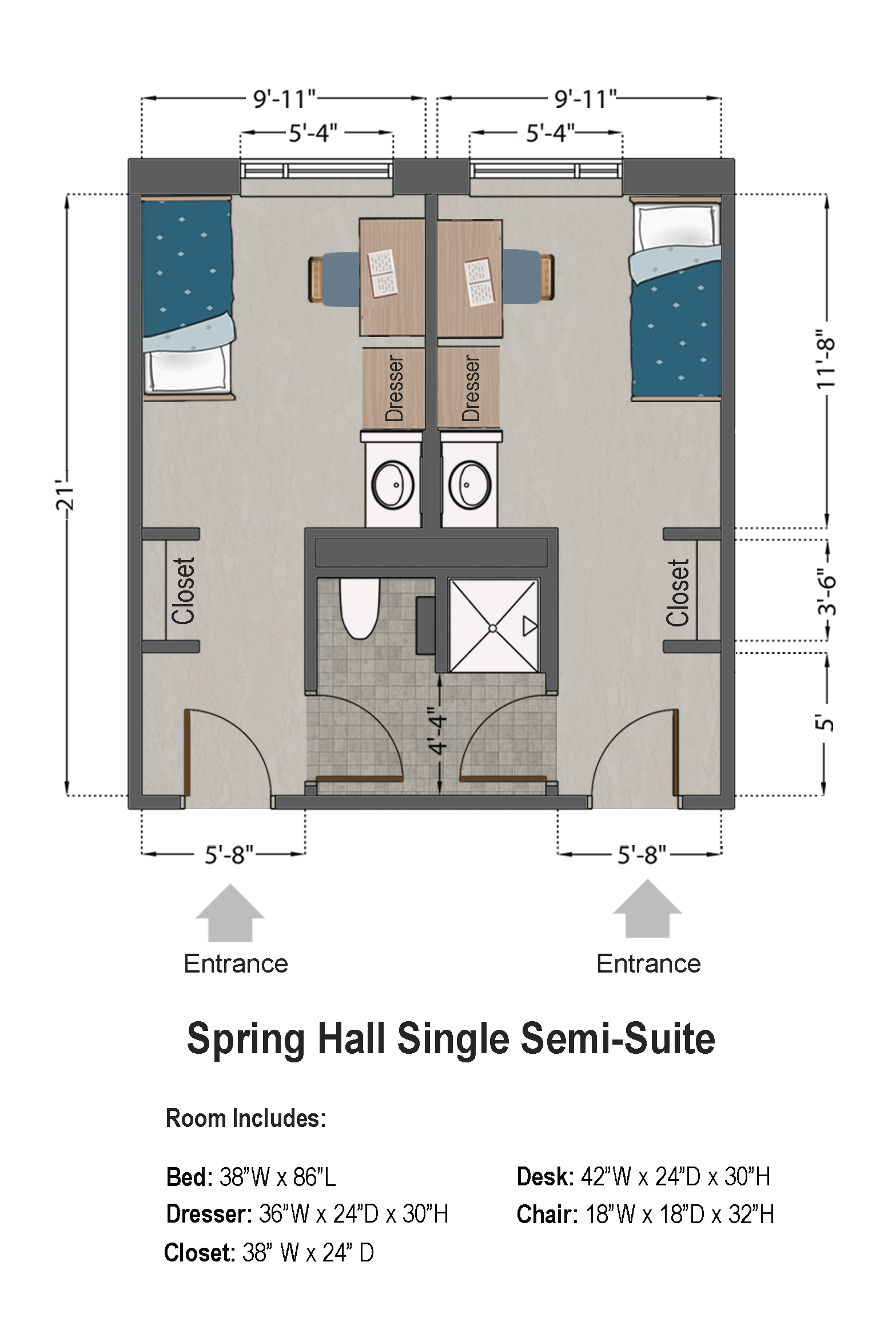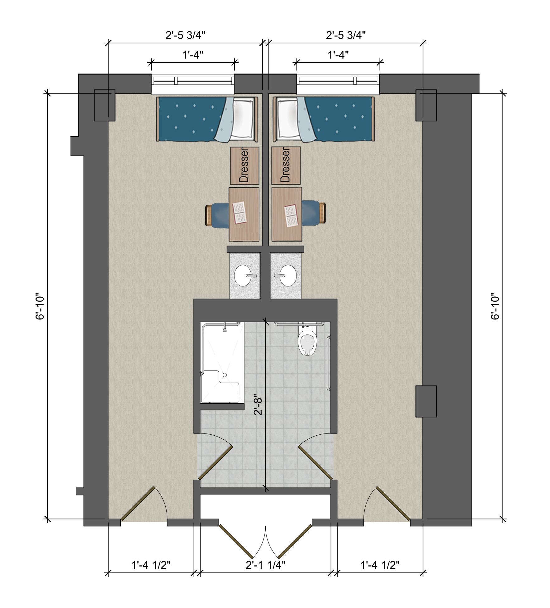 Bathrooms: | Semi-private. Residents of the suites share a bathroom. |